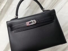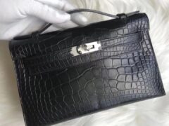 エルメスMinikelly22CMエルメスCK89ブラックマットクロコダイルレザーミニケリーバッグシルバーバックル