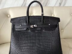 エルメスバッグ公式サイトエルメスブラックシャイニークロコダイルレザーと牛革プラチナバッグBirkin25CMローズゴールドバックル