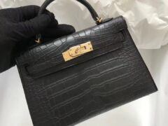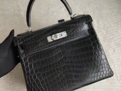 エルメスケリーレディースバッグエルメスオリジナルマットクロコダイルスキンケリーバッグKelly25CMck89ブラックシルバーバックル