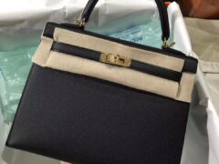 スポットエルメスミニケリーバッグエルメスミニケリー22cmCK89ブラックエプソムレザーブラック&ホワイトラインゴールドバックル