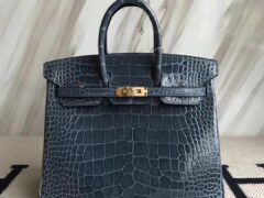 エルメスバーキン25CMエルメス7Nストームブルーシャイニークロコダイルレザーバーキンシルバーバックル