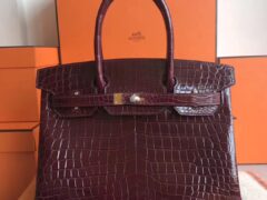 エルメスバーキン30CMエルメスシャイニークロコダイルレザープラチナバッグゴールデンブラウンゴールドバックル