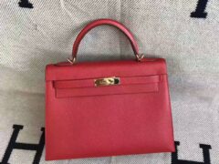エルメスウィメンズバッグ公式サイトエルメスケリー32cmQ5フラッグレッドオリジナルエプソムレザーゴールド&シルバーバックル