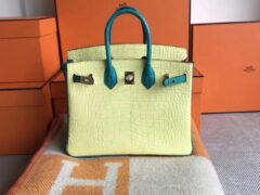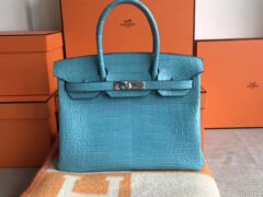 エルメスバーキン25CMエルメス7Wイズミールブルーシャイニークロコダイルレザープラチナバックル