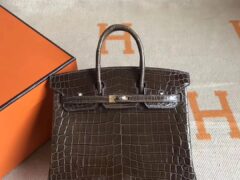 エルメスバーキン25cmチェスナットブラウンシャイニークロコダイルレザープラチナバックル