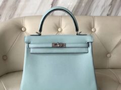エルメスケリー25CMエルメスU2ブリーズブルーオリジナルスウィフトレザーケリーバッグインナーソーイングシルバーバックル