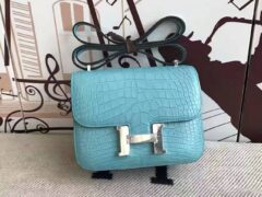 エルメススチュワーデスバッグサイズエルメス7Qギリシャブルーシャイニークロコダイルスキンコンスタンスバッグコンスタンス19cm