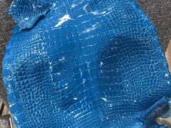 エルメスクロコダイルレザーブルーの光沢のあるクロコダイルレザー