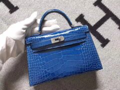エルメス新着レザーエルメスブルーシャイニークロコダイルレザーカスタマイズ可能なミニケリーバッグ/スチュワーデスバッグ
