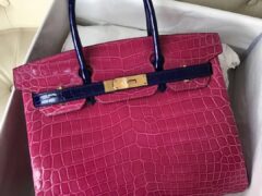 スポットエルメスBirkin30CMエルメス7T電気光学ブルー光沢クロコダイルレザープラチナバッグゴールドバックル