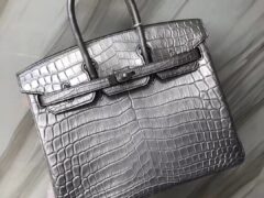 カスタムエルメスクロコダイルレザープラチナバッグエルメスBirkin25CMシルバートップクロコダイルレザー手縫いシルバーバックル