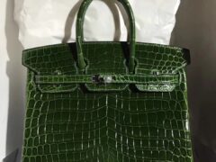 エルメスバーキンバッグ25CMエルメスエメラルドグリーンシャイニーツーポイントクロコダイルレザープラチナバッグシルバーバックル