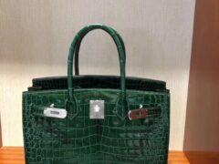 エルメスバーキン30CMエルメスCK67エメラルドシャイニークロコダイルレザープラチナバッグシルバーバックル
