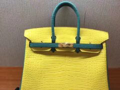 エルメスバッグ公式サイトエルメス9Rレモンイエロースペル7FピーコックブルーマットクロコダイルレザーBirkin25プラチナバッグ