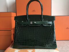 エルメスバーキンサイズエルメスバーキン30CMCK67エメラルドシャイニークロコダイルレザーシルバーバックル