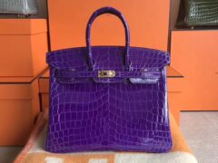 エルメスバーキンバッグエルメスシャイニーツーポイントクロコダイルレザープラチナバッグ25CM5Lエクストリームパープルゴールドバックル