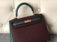 カスタマイズされたエルメスケリー25cmエルメスCK57ボルドーレッド、Z6マラカイトグリーンエプソムレザーケリーバッグゴールドバックル