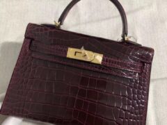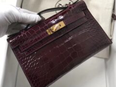 スポットエルメスミニケリーバッグ2世代エルメスミニケリー-2CK57ボルドーレッドシャイニークロコダイルレザーゴールドバックル