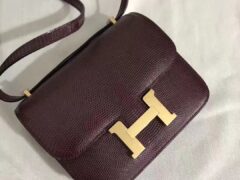カスタマイズされたエルメストカゲスキンスチュワーデスバッグエルメスコンスタンス18CMCK57ボルドーレッドゴールドバックル