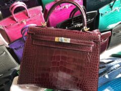 スポットエルメスケリーバッグ卸売エルメス光沢のあるクロコダイルスキンKelly25CMCK57ボルドーレッドゴールドバックル