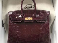 スポットエルメスバッグソースエルメスクロコダイルレザープラチナバッグBirkin25CMCK57ボルドーレッドゴールド/シルバーバックル