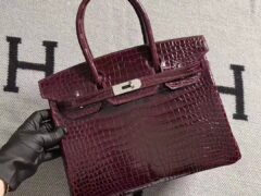 エルメスバーキンバッグエルメスボルドーバーガンディ光沢のあるクロコダイルレザーバーキンシルバーバックル