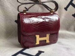 エルメスコンスタンス24cmエルメスCK57ボルドーバーガンディ光沢のあるクロコダイルレザースチュワーデスバッグ