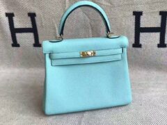 カスタマイズされたエルメスカラーブロッキングケリーバッグエルメスケリー25CMB3タンザニアブルースペリングマカロンブルーゴールドバックル