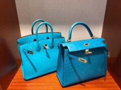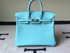 スポットエルメスバーキン25CMエルメス3PマカロンブルーKKオーストリッチレザープラチナシルバーバックル