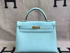 スポットエルメスケリー28CMエルメスマカロンブルートーゴカーフスキンケリーバッグゴールドバックル/シルバーバックル