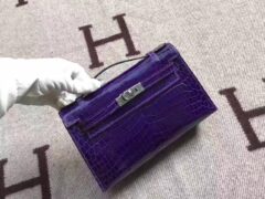 エルメスレディースバッグ価格エルメスミニケリーバッグ9Kアイリスパープルクロコダイルレザークラッチ22cm