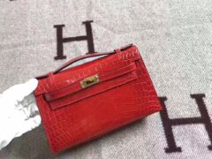 エルメスエルメスミニケリーバッグCC95フェラーリレッドシャイニークロコダイルレザーミニケリー22cm