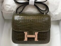 エルメススチュワーデスバッグ価格エルメスコンスタンス18cm6Hオリーブグリーンシャイニークロコダイルレザーリザードバックル