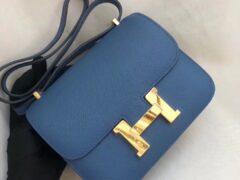 エルメスコンスタンスバッグエルメスコンスタンス18CM2R瑪瑙ブルー、シーガルグレーゴールドバックル/シルバーバックル