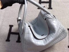 エルメスリンディウィメンズバッグエルメスリネンブルーマットクロコダイルレザーリンディバッグリンディ26CMシルバーバックル