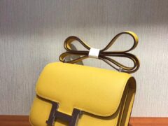 エルメスコンスタンスバッグエルメスオリジナルパームグレイン牛革Constance19CM9D琥珀色イエローシルバーバックル