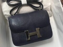 エルメススチュワーデスバッグエルメスコンスタンス19CM2Zミッドナイトブルー輸入リザードスキンシルバーバックル