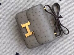 エルメスコンスタンス19cmエルメスM8アスファルトグレーKKオーストリッチレザーコンスタンスゴールドバックル