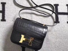エルメススチュワーデスバッグサイズエルメスコンスタンス19CMブラックマットクロコダイルレザーゴールドバックル