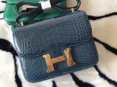エルメスコンスタンス19CMエルメスギリシャブルーシャイニークロコダイルコンスタンスバッグシルバーバックル