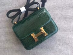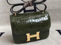 エルメススチュワーデスバッグエルメスコンスタンス18CMV6オリーブグリーンシャイニークロコダイルレザーゴールドバックル