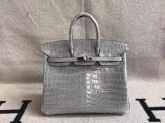 エルメスバーキンレディースバッグエルメスライトグレー光沢のあるクロコダイルレザーBirkin25プラチナバッグシルバーバックル