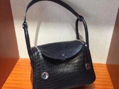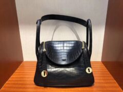 スポットエルメスリンディレディースバッグエルメスマットクロコダイルスキンリンディバッグLindy26CMck89ブラックゴールドバックル