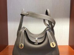 エルメスリンディバッグエルメスオリジナルクイーンレザーリンディバッグLindy26CMCK18エレファントグレーゴールドバックル