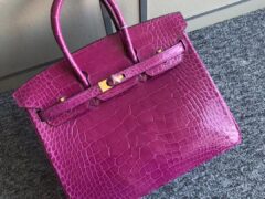 スポットエルメスバーキンバッグBirkin25cmJ5アラビアンナイトピンクパープルシャイニークロコダイルレザープラチナバッグゴールドバックル