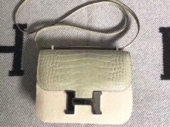 エルメススチュワーデスバッグサイズエルメスクリームホワイトシャイニースクエアクロコダイルレザーコンスタンス19CMコンスタンスバッグ