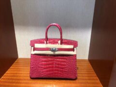 エルメスバーキン25CMI6エクストリームピンクシャイニークロコダイルレザーシルバーバックル