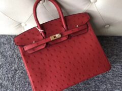 スポットエルメスバーキン25CMエルメスQ5フラッグレッドKKオーストリッチレザープラチナバッグゴールドバックル