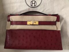 エルメスMinikelly22CMエルメスQ5フラッグレッドトップKKオーストリッチレザーミニケリーバッグゴールドバックル