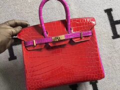 エルメスカラーマッチングプラチナバッグエルメスバーキン25CMフェラーリレッドスペリングJ5トップクロコダイルレザーゴールドバックル